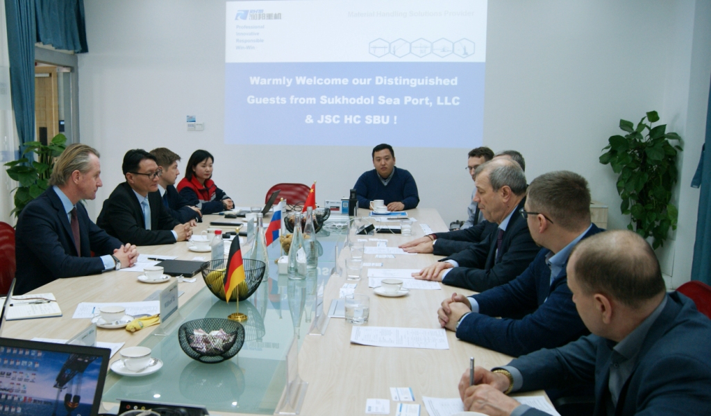 俄羅斯SBU集團(tuán)總裁Fedyaev先生率集團(tuán)高層一行6人訪問潤(rùn)邦重機(jī),就目前與Koch Solutions合作的Sukhodol Sea Port項(xiàng)目進(jìn)行了深入地交流。